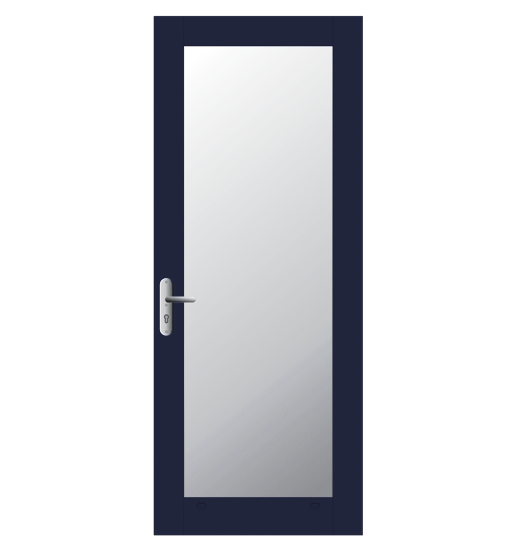 Achterdeur. Massief hardhout in FSC® of NON-FSC®. Leveringen onder KOMO keurmerk, PKVW keurmerk en 6 jaar garantie. Afwerking: voor- of aflak in een RAL kleur.