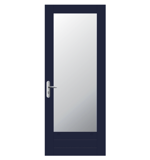 Achterdeur. Massief hardhout in FSC® of NON-FSC®. Leveringen onder KOMO keurmerk, PKVW keurmerk en 6 jaar garantie. Afwerking: voor- of aflak in een RAL kleur.