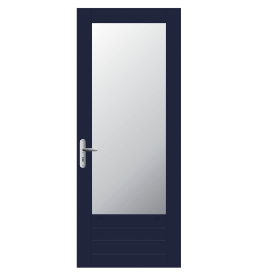 Achterdeur. Massief hardhout in FSC® of NON-FSC®. Leveringen onder KOMO keurmerk, PKVW keurmerk en 6 jaar garantie. Afwerking: voor- of aflak in een RAL kleur.