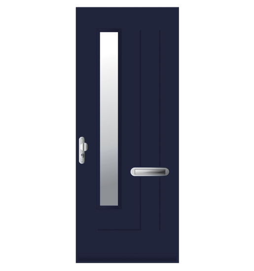 Voordeur. Samengesteld. Randhout met 2-zijdig beplating en kurkvulling in FSC® of NON-FSC®. Leveringen onder KOMO keurmerk, PKVW keurmerk en 6 jaar garantie. Afwerking: voor- of aflak in een RAL kleur.