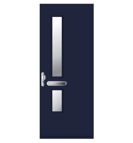 Voordeur. Samengesteld. Randhout met 2-zijdig beplating en XPS vulling in FSC® of NON-FSC®. Leveringen onder KOMO keurmerk, PKVW keurmerk en 6 jaar garantie. Afwerking: voor- of aflak in een RAL kleur.