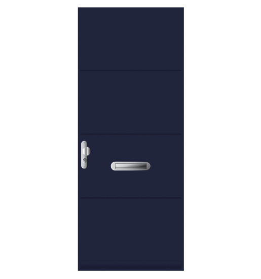Voordeur. Samengesteld. Randhout met 2-zijdig beplating en XPS vulling in FSC® of NON-FSC®. Leveringen onder KOMO keurmerk, PKVW keurmerk en 6 jaar garantie. Afwerking: voor- of aflak in een RAL kleur.