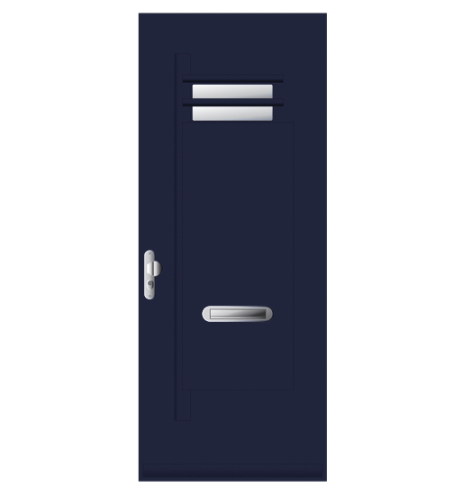 Voordeur. Samengesteld. Randhout met 2-zijdig beplating en XPS vulling in FSC® of NON-FSC®. Leveringen onder KOMO keurmerk, PKVW keurmerk en 6 jaar garantie. Afwerking: voor- of aflak in een RAL kleur.