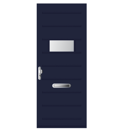 Voordeur. Samengesteld. Randhout met 2-zijdig beplating en XPS vulling in FSC® of NON-FSC®. Leveringen onder KOMO keurmerk, PKVW keurmerk en 6 jaar garantie. Afwerking: voor- of aflak in een RAL kleur.